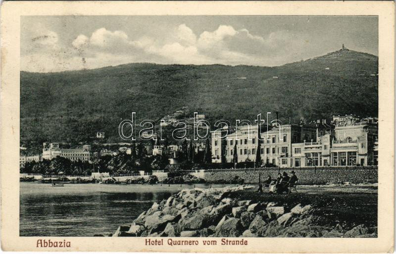 Abbazia, Opatija; Hotel Quarnero vom Strande / szálloda / hotel, shore (kis szakadás / small tear)