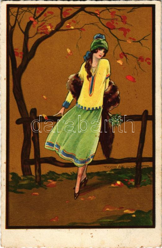 1929 Olasz hölgy művészlap / Italian lady art postcard. Degami 874. s: T. Corbella