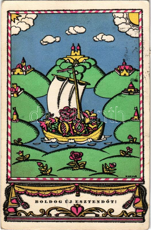 1940 Boldog Új Esztendőt! Nyomtatta és kiadja Kner Izidor, Gyoma / Hungarian art postcard with New Year greeting art postcard s: Kozma (EK)