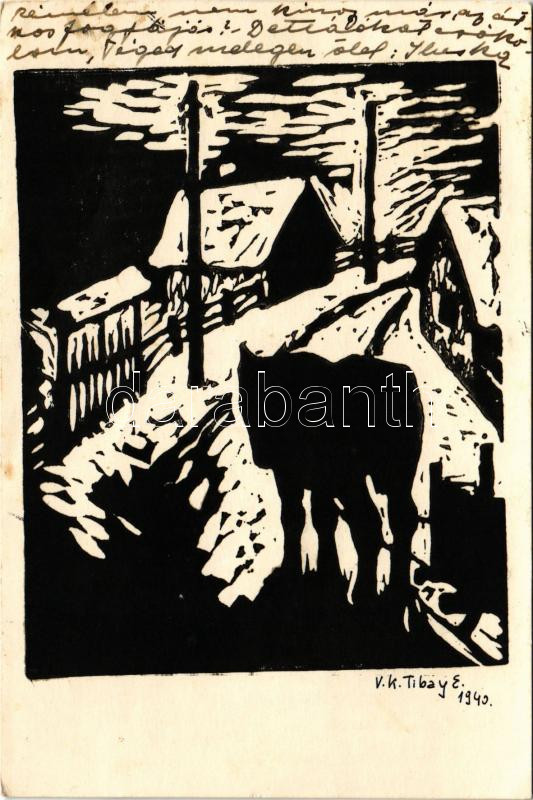 1940 Egyedi, kézzel festett sziluett művészlap / hand-painted silhouette art postcard s: Tibay E. (EB)