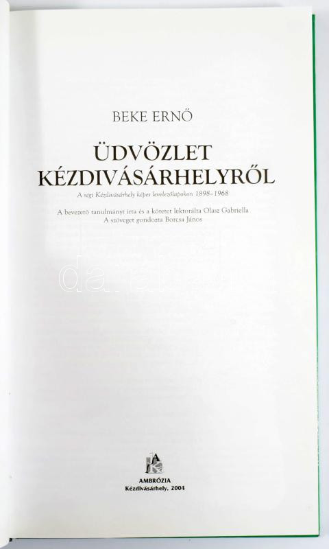 Beke Ernő: Üdvözlet Kézdivásárhelyről. A régi Kézdivásárhely képes levelezőlapokon 1898-1968. Kézdivásárhely, 2004, Ambrózia, 190+[2] p. Gazdag képanyaggal illusztrálva. Kiadói kartonált papírkötés.