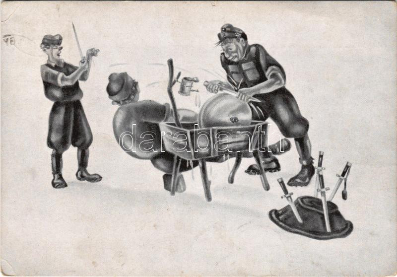 1941 Határvadász élet. Harckészültség. Kerekes Lajos határvadász rajza 20. po. szd. / WWII Hungarian military art postcard (szakadások / tears)