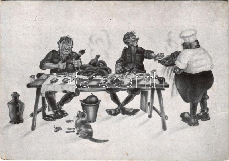 1941 Határvadász élet. Melyiket szeressem. Kerekes Lajos határvadász rajza 20. po. szd. / WWII Hungarian military art postcard (gyűrődések / creases)