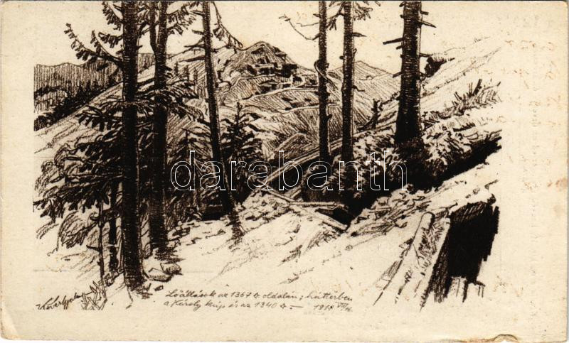 1944 Lőállások a Magyaroson. Kiadja a m. kir. 10. honvéd gyalogezred az özvegy- és árvaalap javára. Herbst műnyomása - 12. / WWI Austro-Hungarian K.u.K. military art postcard s: Kövér Gyula hadnagy (szakadás / tear)