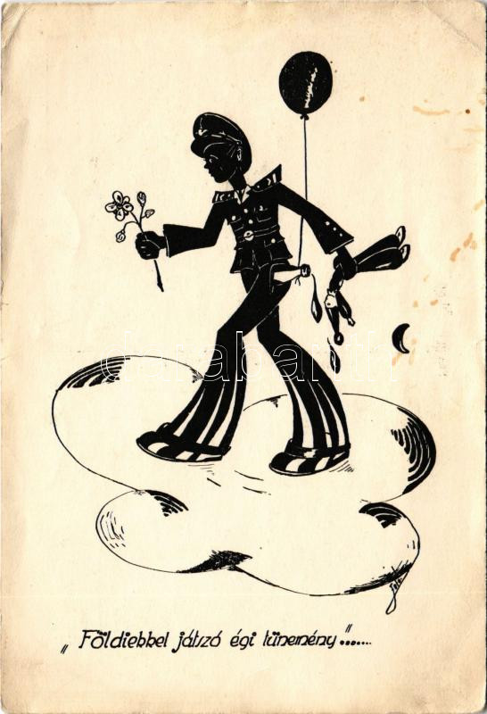 'Földiekkel játszó égi tünemény', rendőr. Keresztény Nemzeti Nyomdavállalat R.t. kiadása / policeman art postcard (EB)