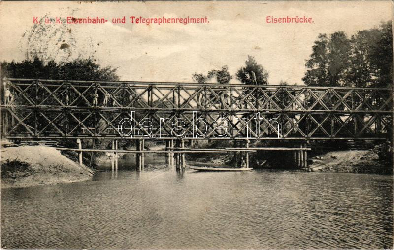 K.u.K. Eisenbahn und Telegraphenregiment, Eisenbrücke / Cs. és kir. vasúti és távíróezred, vashíd építése / K.u.K. Austro-Hungarian Railway and Telegraphy Regiment, iron bridge construction. J.L.K. No. 254. (fl)