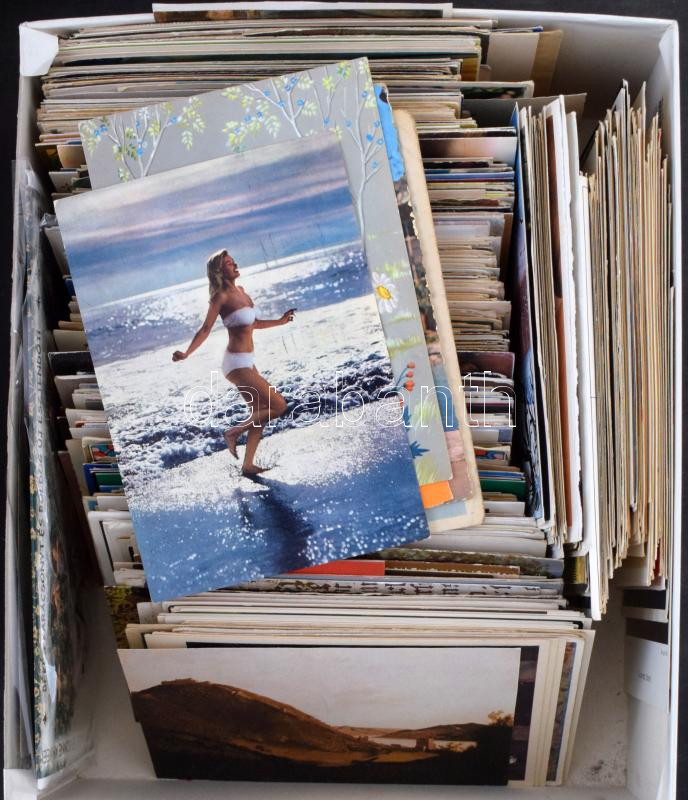 Közel 700 db motívum és üdvözlő képeslap, üdvözlő kártya nagy cipős dobozban