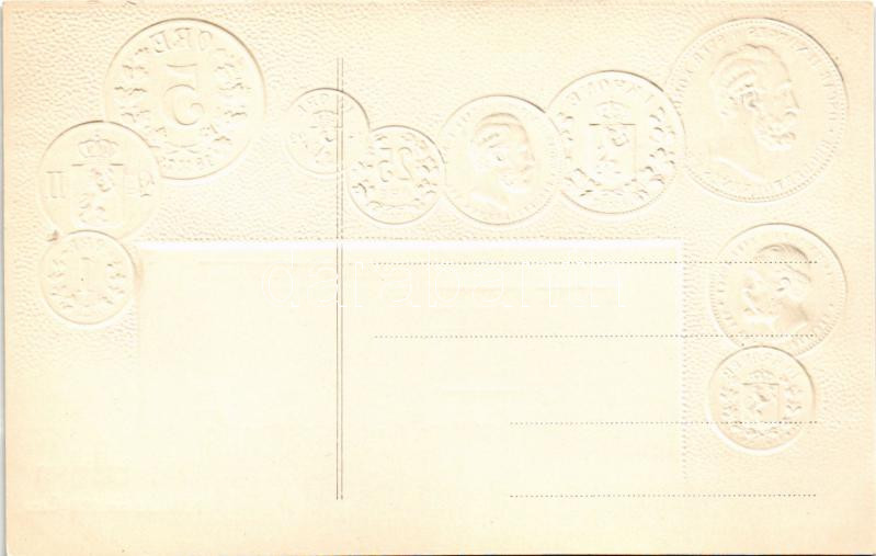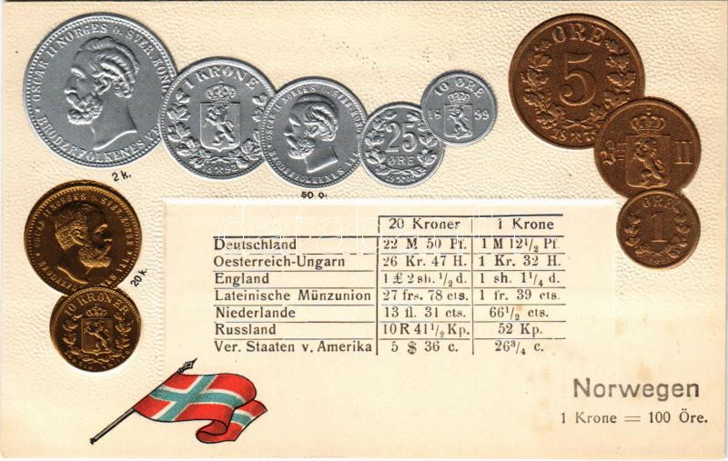 Norwegen / Norvégia - Dombornyomott érmék és zászló / Norway - Embossed coins and flag (lyuk / pinhole)