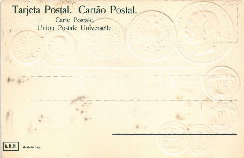 Österreich - Münzenkarte und Handelsflagge / Ausztria (Osztrák-Magyar Monarchia) - Dombornyomott érmék és zászló / Austria-Hungary - Embossed coins and flag (lyuk / pinhole)