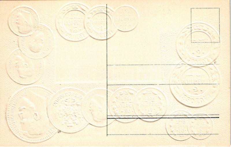Russland / Oroszország - érmék és zászló. Dombornyomott / Russian coins and flag. Emb. litho (lyukak / pinholes)
