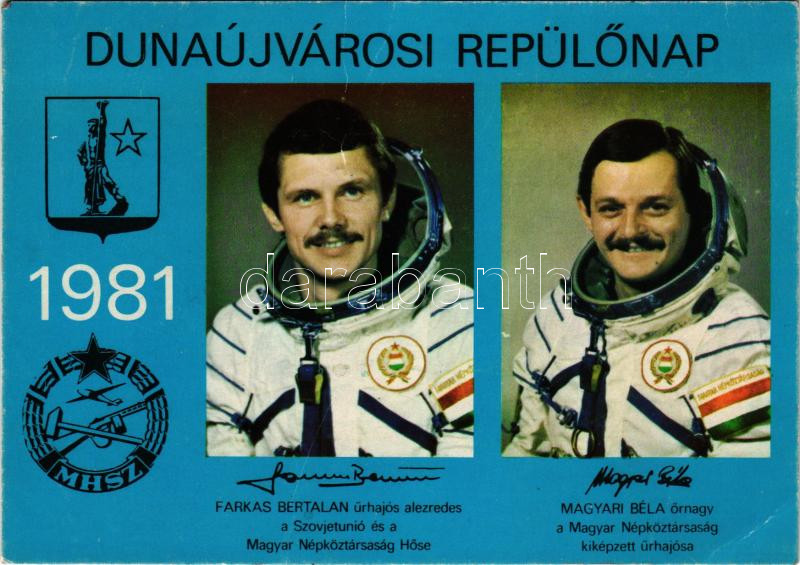 Farkas Bertalan és Magyar Béla. 1981 Dunaújvárosi repülőnap. Kiadja Kulik István / Soviet-Hungarian and Hungarian astronauts (fa)