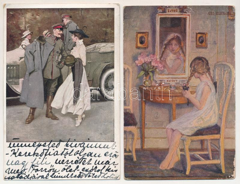 15 db RÉGI motívum képeslap: művészlapok, festmény reprodukciók; vegyes minőségben / 15 pre-1945 motive postcards: art, in mixed quality
