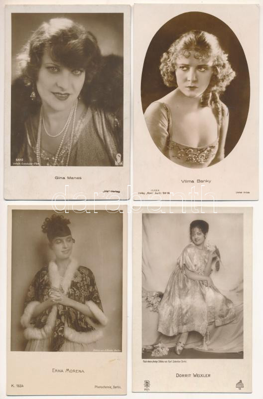4 db RÉGI motívum képeslap, fotólap: külföldi színésznők / 4 pre-1945 motive photo postcards: foreign actresses