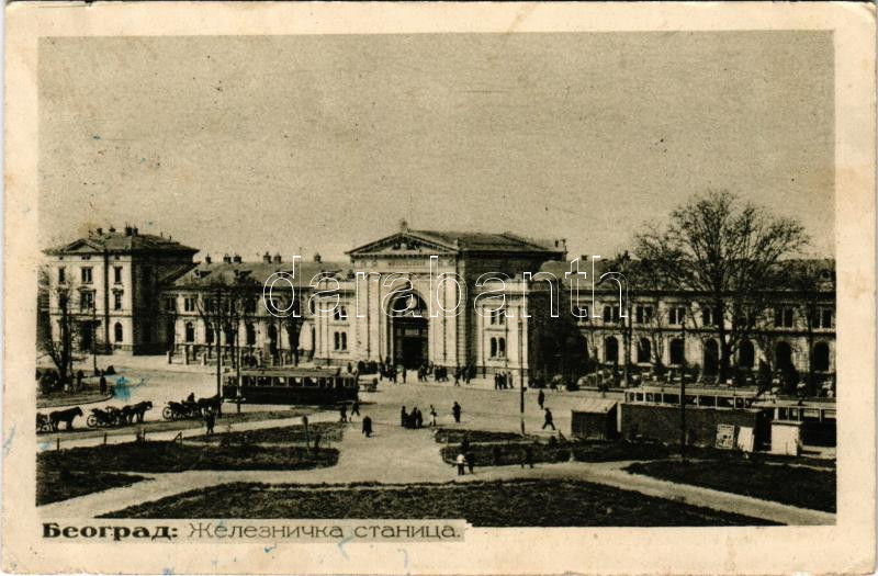 1924 Beograd, Belgrade, Belgrád; Zeleznicka Stanica / railway station, tram (Rb)