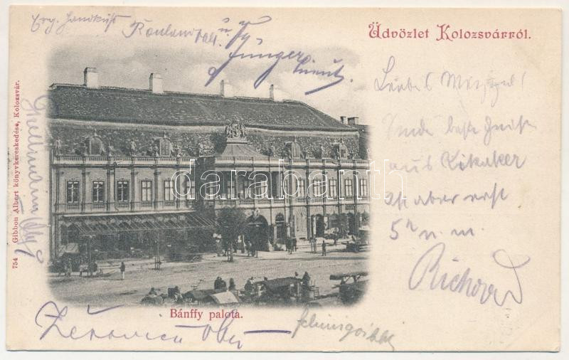 1899 Kolozsvár, Cluj; Bánffy palota, piac. Gibbon Albert kiadása / palace, market (Rb)