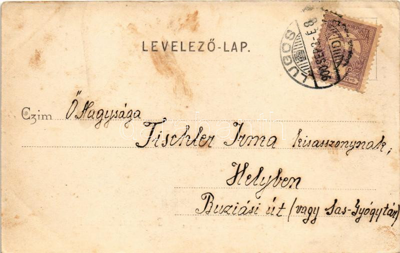 1900 Lugos, Lugoj; látkép. Auspitz Adolf kiadása / general view (ázott / wet damage)