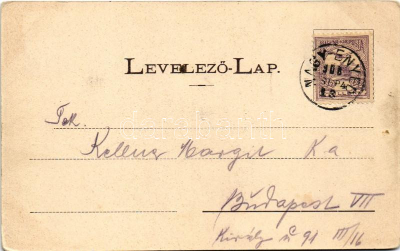 1900 Nagyenyed, Aiud; részletek este holdfényben, sétatéri diák emlékmű. Grünfeld Dávid kiadása, szecessziós-virágos keret / multi-view postcard, at night in moonlight, monument. Art Nouveau, floral (EK)