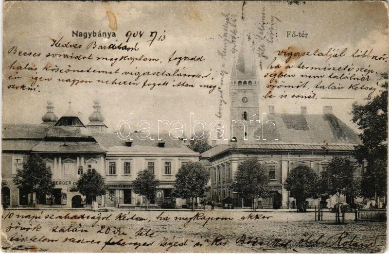1904 Nagybánya, Baia Mare; Fő tér, üzletek. M. T. és F. I. Koch Willy kiadása / main square, shops (Rb)