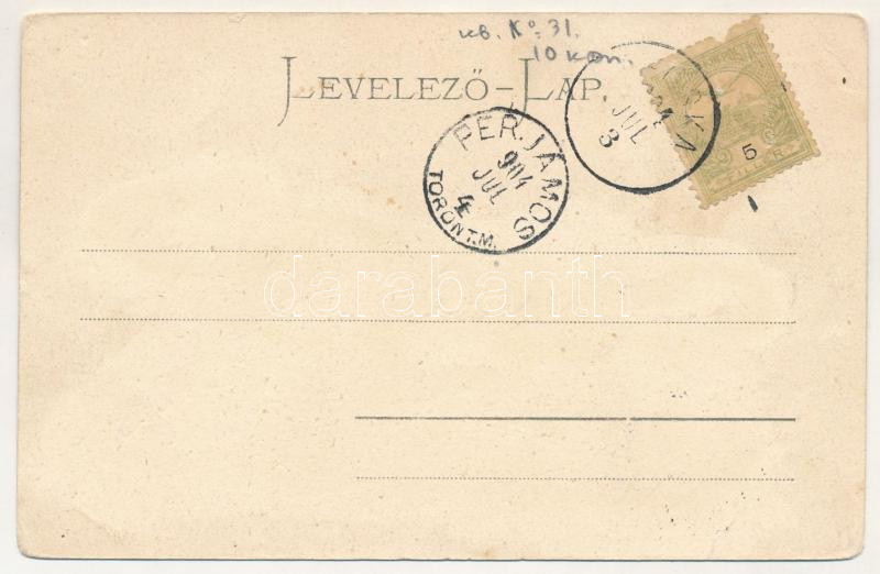 1904 Pécska, Pecica; Maros részlet a komppal. Holzeisen József kiadása / river Mures, ferry (tűnyomok / pinmarks)