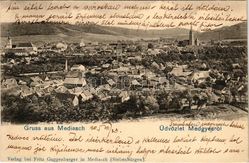 1905 Medgyes, Mediasch, Medias; látkép. Fritz Guggenberger kiadása / general view (EK)
