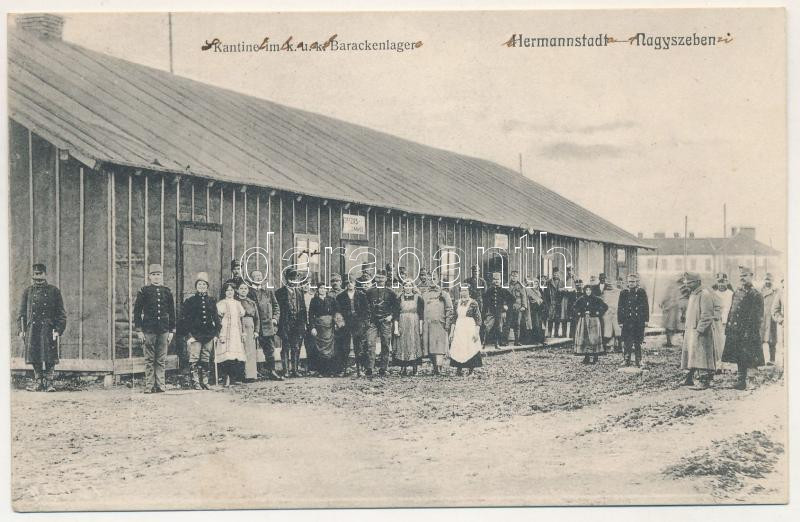 1915 Nagyszeben, Hermannstadt, Sibiu; Kantine im k.u.k. Barackenlager / Cs. és kir. barakk tábor, kantin / K.u.K. military barracks camp, canteen (EK)