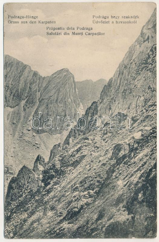 1916 Fogarasi-havasok (Fogarasi Kárpátok), Fogarascher Karpathen, Muntii Fagarasului; Podragul hegy szakadék, üdvözlet a havasokról / Podragu-Hänge / mountain (EB)