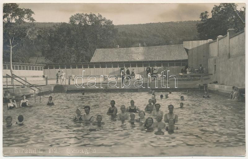 1933 Feredőgyógy, Fürdőgyógy, Algyógyfürdő, Baile Geoagiu, Feredeu; Strandul Bai / fürdőzők / spa, bathers. photo (vágott / cut)