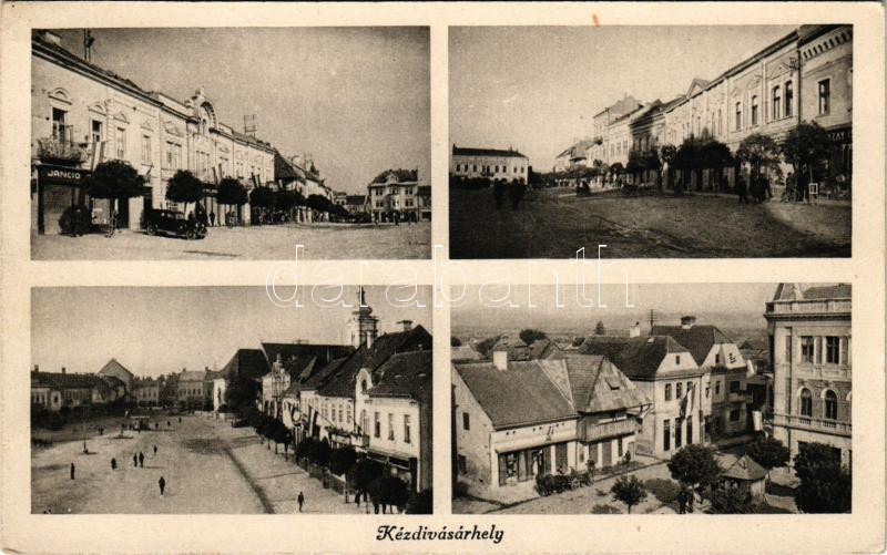 1941 Kézdivásárhely, Targu Secuiesc; részletek, utca, automobil, üzletek. Kovács kiadása / multi-view postcard, streets, automobile, shops (EK)