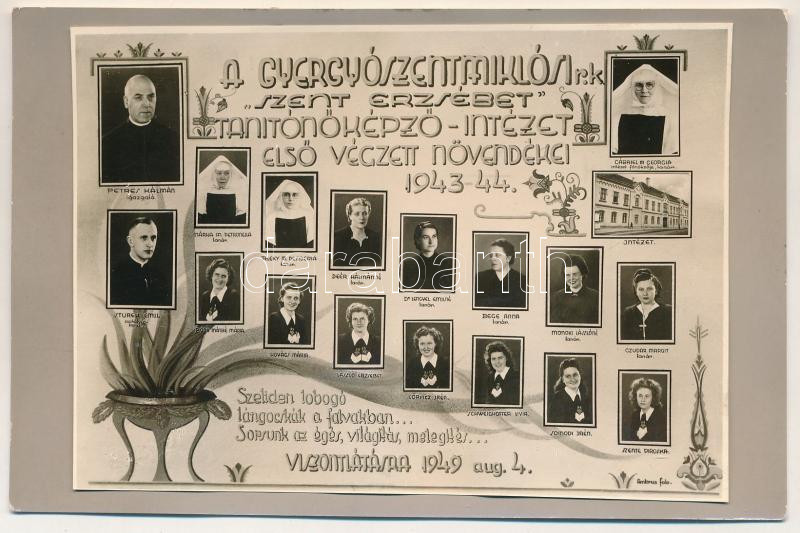 1944 Gyergyószentmiklós, Gheorgheni; A Szent Erzsébet Tanítónőképző Intézet első végzett növendékei 1943-44, tablója, ragasztott fotó / school graduates, tableau. glued photo (ragasztónyomok / glue marks)