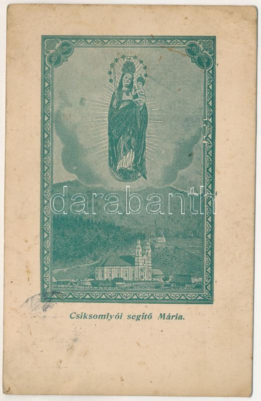 Csíksomlyó, Sumuleu Ciuc; Segítő Mária szobor és templom / Virgin Mary statue and church (Rb)