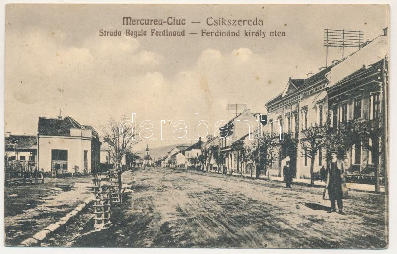 Csíkszereda, Miercurea Ciuc; Ferdinánd király utca. Swoboda M. kiadása / Strada Regele Ferdinand / street " "Ellenőriztem, Híradó Század" (fl)