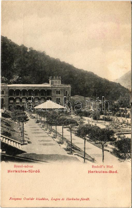 Herkulesfürdő, Baile Herculane; Rezső udvar. Fenyves Oszkár kiadása / Rudolf's Hof / spa hall (Rb)