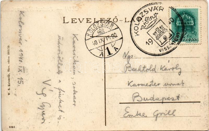Kolozsvár, Cluj; Nemzeti színház / Teatrul National / national theatre. photo + "1940 Kolozsvár visszatért" So. Stpl. (EK)