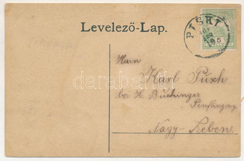 Piski, Simeria; csárda, híd, M. kir. állami iskola. Főző József kiadása / inn, bridge, school. Art Nouveau, floral (r)