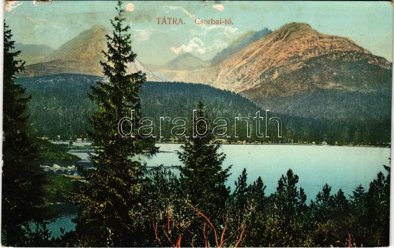 1910 Tátra, Magas-Tátra, Vysoké Tatry; Csorba-tó. Feitzinger Ede No. 1020. 1908/18. / Strbské pleso / lake (ázott / wet damage)