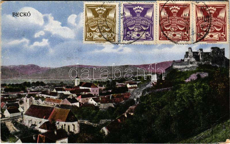 1925 Beckó, Beczkó, Beckov; látkép, várrom. Horovitz Adolf kiadása / view, castle ruins. TCV card (EB)