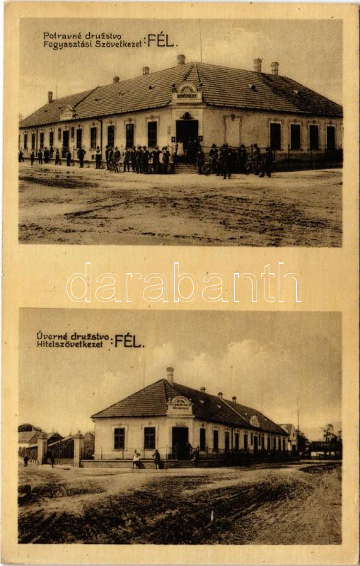 Fél, Tomasov; Fogyasztási szövetkezet üzlete, Hitelszövetkezet. Otto Brunner kiadása / cooperative shop, credit union (r)