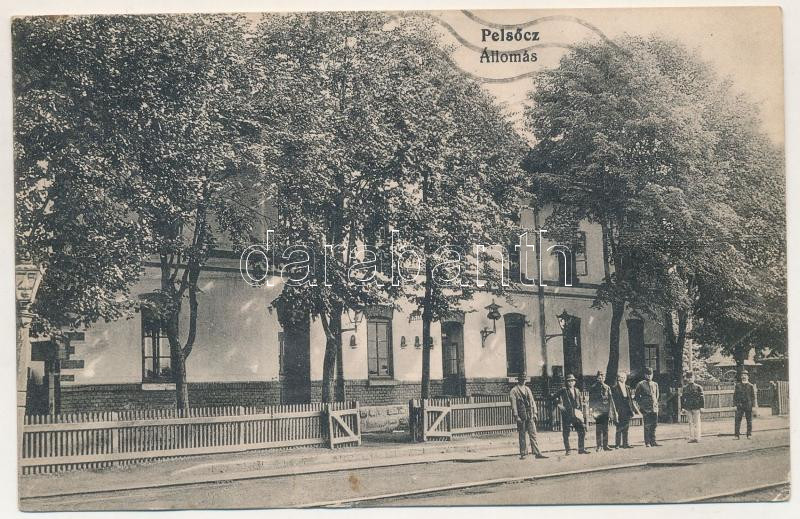 Pelsőc, Pelsőcz, Pelsücz, Plesivec (Gömör); vasútállomás. MÁV levelezőlapárusítás 3803. / railway station (gyűrődés / crease)
