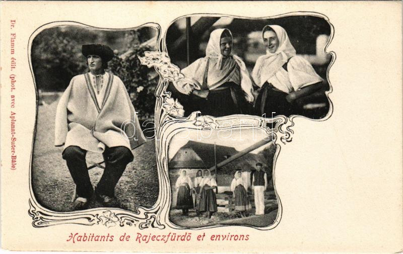 Rajecfürdő, Rajecz-fürdő, Rajecké Teplice; Habitants. Dr. Flamm édit. / népviselet / folk costumes. Art Nouveau, floral (EK)