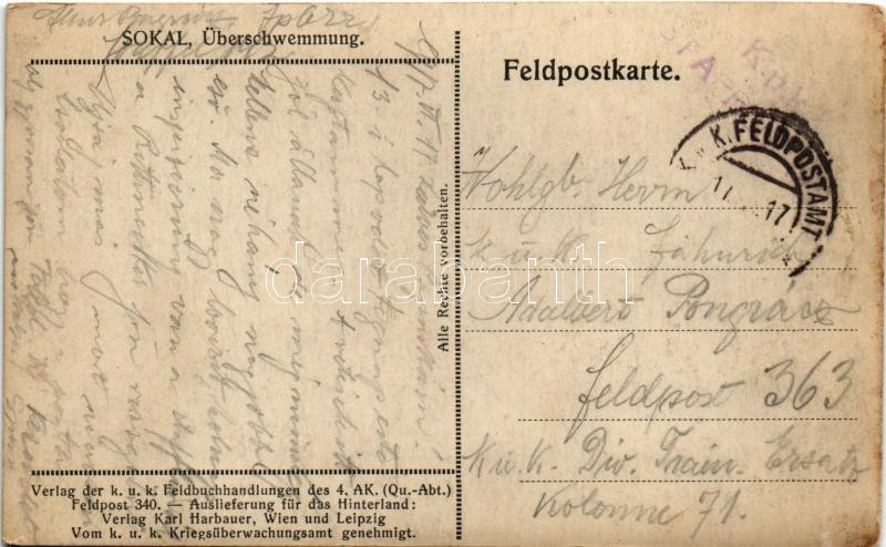 1917 Sokal, Überschwemmung. Verlag Karl Harbauer, Feldpostkarte / flood. photo