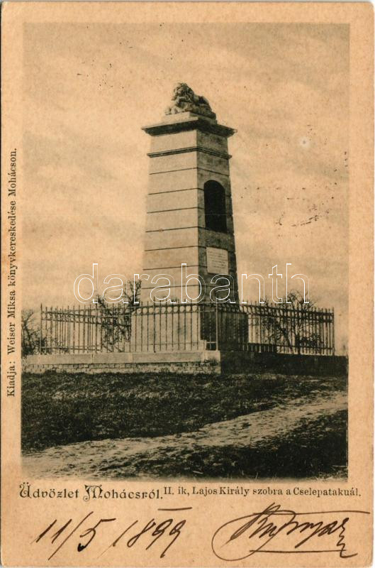 1899 Mohács, II. Lajos szobor a Csele-pataknál. Weiser Miksa kiadása (EK)