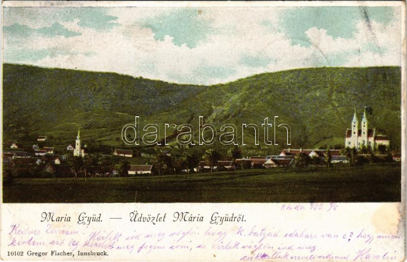 1900 Máriagyűd (Siklós), kegytemplom, látkép. Gregor Fischer kiadása (EK)