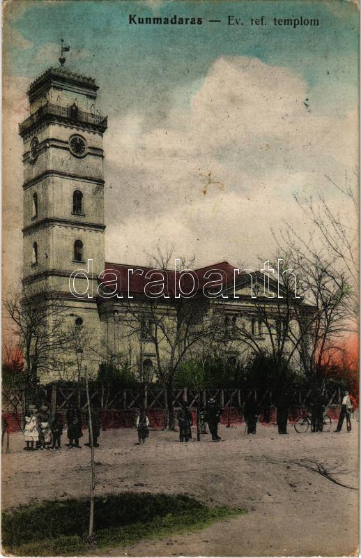 1912 Kunmadaras, Református templom. Szeghalmy János kiadása (ragasztónyom / glue marks)