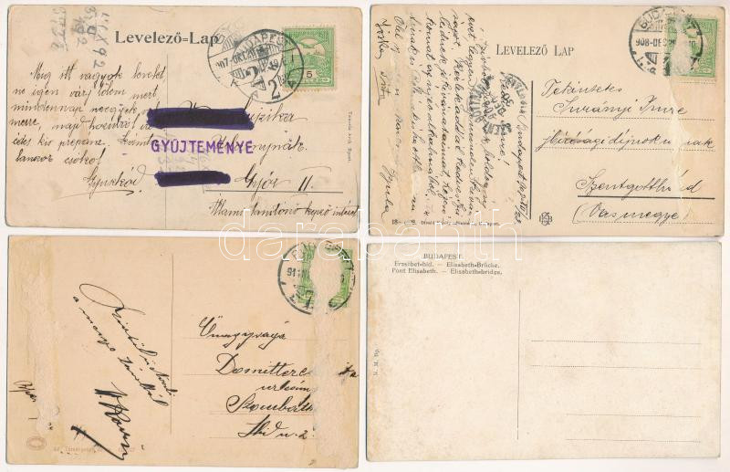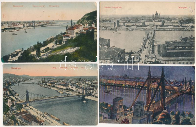Budapest - 4 db RÉGI város képeslap: hidak, közte 1 Taussig Arthur kiadás