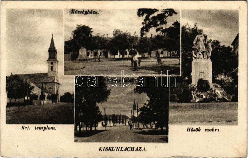 Kiskunlacháza, Református templom, Községháza, Hősök szobra, emlékmű, utca (Rb)