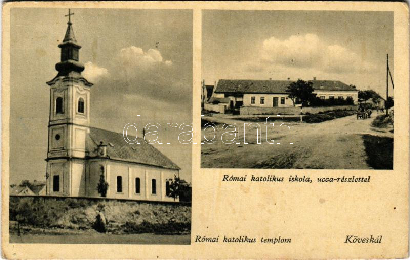 Köveskál, Római katolikus templom és iskola, utca. Hangya szövetkezet kiadása (Rb)