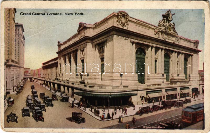 New York City, Grand Central Terminal Station, railway station, tram, automobiles (EB)