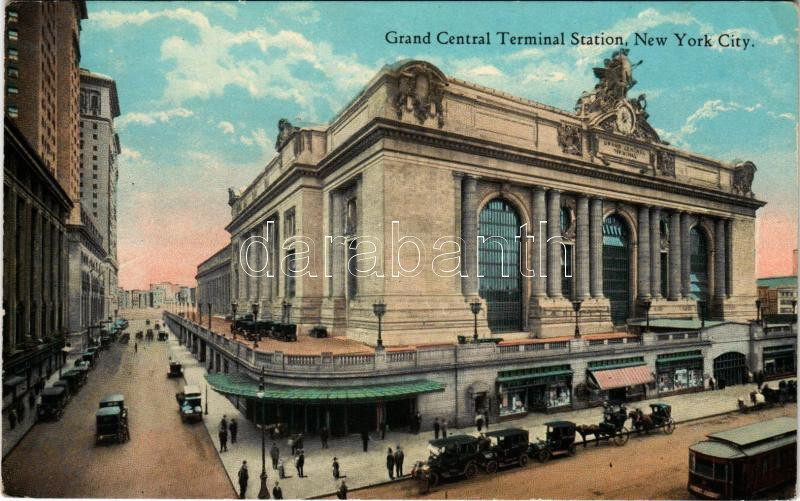 New York City, Grand Central Terminal Station, railway station, tram, automobiles (EK)