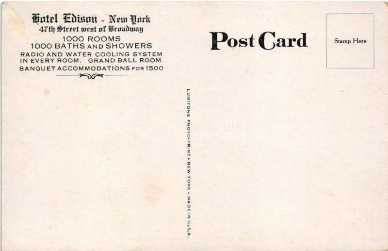 New York City, Hotel Edison, automobiles, 46th to 47th Street just West of Broadway (Rb)