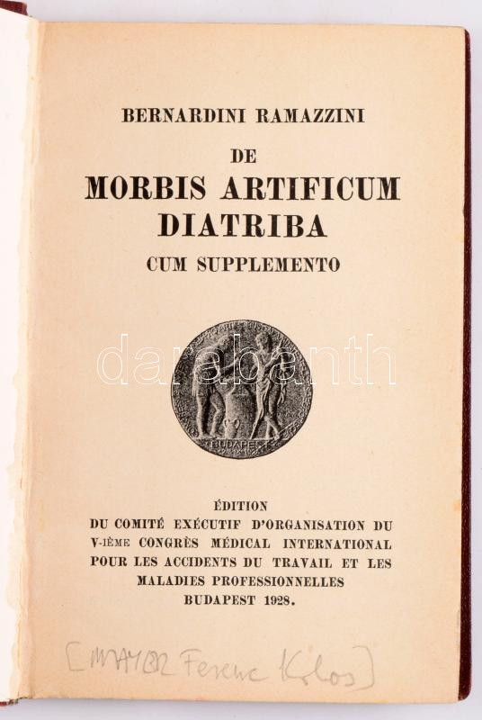 Ramazzini, Bernardini: De Morbis Artificum Diatriba. Bp., 1928. 228p. Egészvászon kötés, kopottas állapotban.